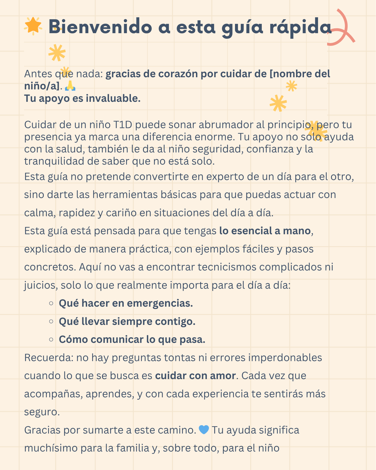 Sabemos lo difícil que puede ser confiar en un nuevo cuidador cuando está en juego la salud de tu hijo/a. Por eso creamos esta Guía Rápida para Cuidadores Nuevos, un material cálido, simple y práctico que explica lo esencial para que cualquier persona pueda cuidar con seguridad y tranquilidad.